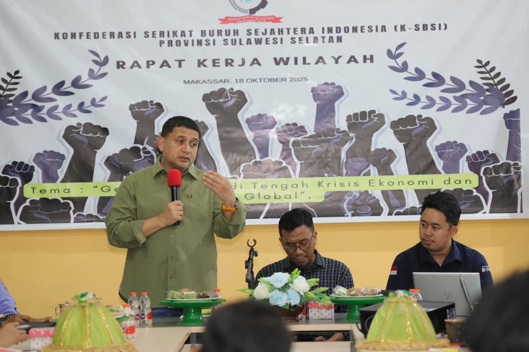 Hal tersebut disampaikan saat memberikan sambutan pada Rapat Kerja Wilayah (Rakerwil) Konfederasi Serikat Buruh Sejahtera Indonesia (KSBSI) Provinsi Sulawesi Selatan Tahun 2025 yang digelar di Gedung PGIW, Jalan Abdurrahman Basalamah, Makassar, Sabtu (18/10/2025).