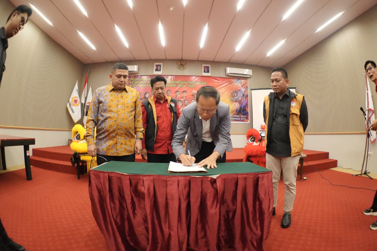 MAKASSAR, 27 Desember 2025 (Dotnews) – Wali Kota Makassar, Munafri Arifuddin, menghadiri acara pelantikan Pengurus Federasi Olahraga Barongsai Indonesia (FOBI) Kota Makassar periode 2025–2029 yang digelar di Hotel Kenari Tower, Sabtu (27/12/2025).